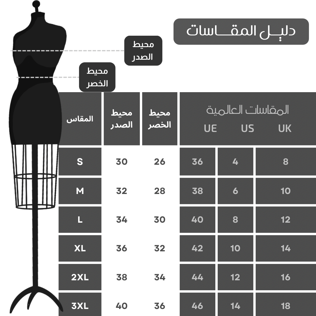 - المقاسات المتوفرة: S M L XL XXL XXXL