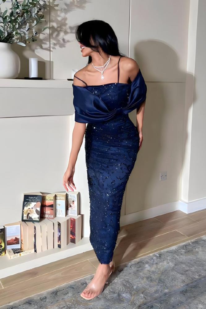• اللون الكحلي الكلاسيكي يعزز من الفخامة والأناقة وهو لون يناسب العديد من المناسبات الليلية ويضفي رونقًا خاصًا على الإطلالة.