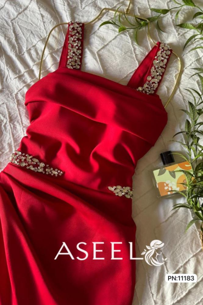 - فستان احمر طويل مناسب لحفلات الزفاف، السهرات الفاخرة، حفلات الخطوبة، والمناسبات الخاصة الأخرى مما يجعله قطعة متعددة الاستخدامات في خزانة ملابسكِ.