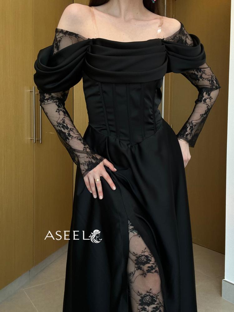 فستان اسود كورسيه بأكمام دانتيل