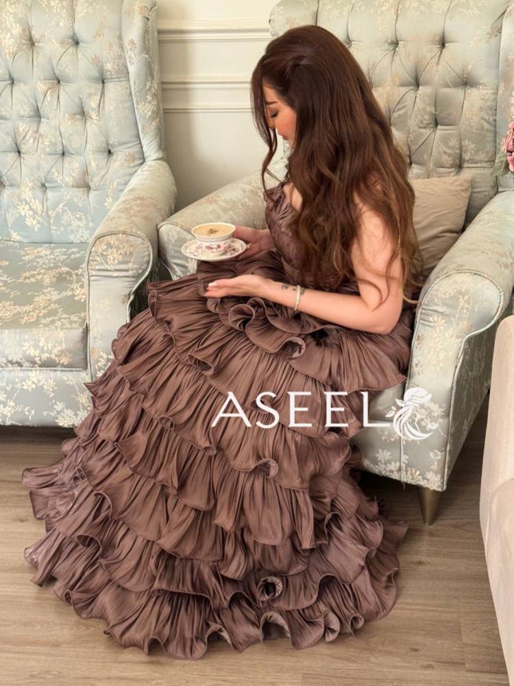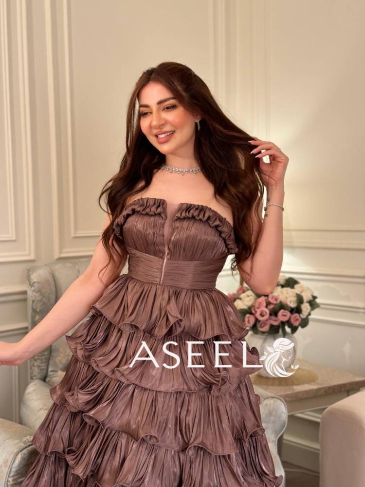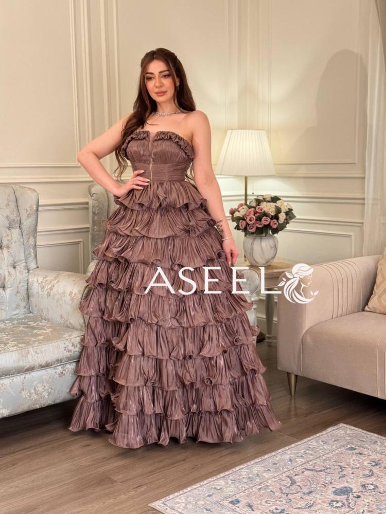 فستان سهرة طبقات خيارا ممتازا لكل امرأة تبحث عن الاناقة والتميز فهو يتميز بتصميمه الناعم والمتقن حيث يتكون من طبقات متعددة من التل الذي يضفي لمسة من الأناقة والرشاقة. باللون البني يعكس دفء الطقس ويدل على الأناقة الكلاسيكية مما يجعله ملائمًا لمختلف المناسبات من حفلات الزفاف إلى المناسبات الرسمية. يساهم استعمال التل في إضافة لمسة من الخفة والحيوية مما يجعل صاحبة الفستان تشعر بالراحة بينما تتألق بجمالها.